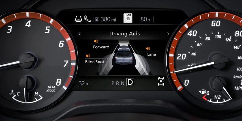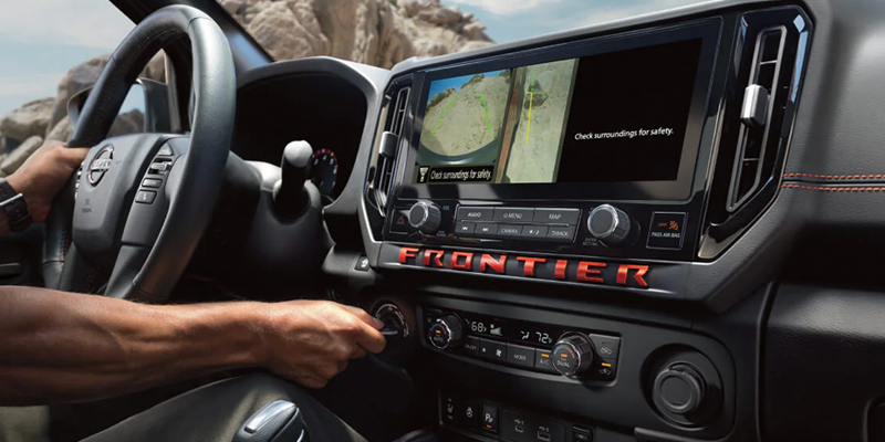Safety is a top priority in the 2026 Nissan Frontier, with standard Nissan Safety Shield® 360 features designed to protect both the driver and passengers. These include automatic emergency braking, blind-spot warning, rear cross-traffic alert, and lane departure warning, among others. Higher trims also offer additional features like intelligent cruise control, traffic sign recognition, and the available surround-view monitor, which includes an off-road mode to help you see all around the truck when navigating difficult terrain. With its reinforced frame structure and comprehensive airbag system, the Frontier is built to provide peace of mind in every driving situation.