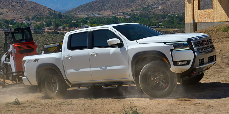 Whether you're towing or navigating rugged terrain, the 2026 Nissan Frontier stands out for its performance. Featuring a strong, fully boxed ladder frame and a multi-leaf rear suspension, it offers exceptional durability and load stability. For those taking the truck off-road, the PRO-4X trim is equipped with Bilstein® shocks, skid plates, and selectable terrain modes that adapt to different surfaces, including snow, sand, rock, or road conditions. With engineered approach, breakover, and departure angles, this truck is well-suited for off-road adventures. Additional features like hill descent control, trailer sway control, and hill start assist provide greater confidence and control when hauling or driving on challenging terrain.