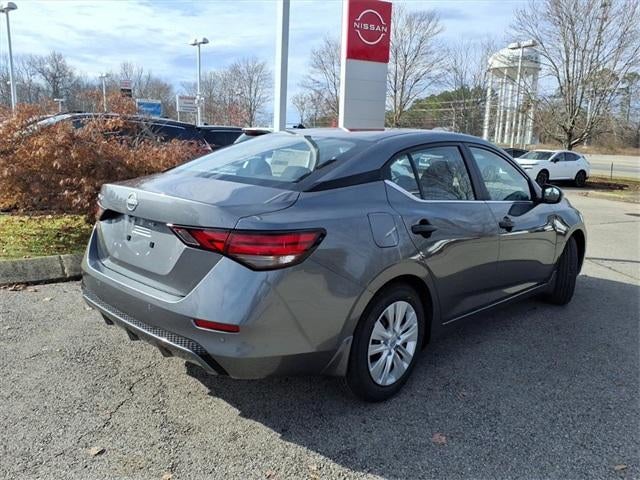 The 2025 Nissan Sentra comes equipped with the following CVT with Xtronic, Charcoal Cloth, 4 Speakers, ABS brakes, Air Conditioning, AM/FM radio, Auto High-beam Headlights, Blind Spot Warning, Body Colored Splash Guards (4-Piece), Brake assist, Bumpers: body-color, Carpeted Floor Mats with Trunk Mat, Cloth Seat Trim, Delay-off headlights, Driver door bin, Driver vanity mirror, Dual front impact airbags, Dual front side impact airbags, Electronic Stability Control, Four wheel independent suspension, Front anti-roll bar, Front Bucket Seats, Front Center Armrest, Front reading lights, Fully automatic headlights, Illuminated entry, Knee airbag, Low tire pressure warning, NissanConnect featuring Apple CarPlay and Android Auto, Occupant sensing airbag, Outside temperature display, Overhead airbag, Overhead console, Panic alarm, Passenger door bin, Passenger vanity mirror, Power door mirrors, Power steering, Power windows, Radio data system, Radio: AM/FM with RDS/MP3/Aux-in, Rear anti-roll bar, Rear Parking Sensors, Rear side impact airbag, Rear window defroster, Remote keyless entry, Speed control, Speed-sensing steering, Split folding rear seat, Steering wheel mounted audio controls, Tachometer, Telescoping steering wheel, Tilt steering wheel, Traction control, Trip computer, Variably intermittent wipers, and Wheels: 16" Steel with Full Covers. Gun Metallic 2025 Nissan Sentra S FWD CVT with Xtronic 2.0L I4 DOHC CVT with Xtronic, Charcoal Cloth.