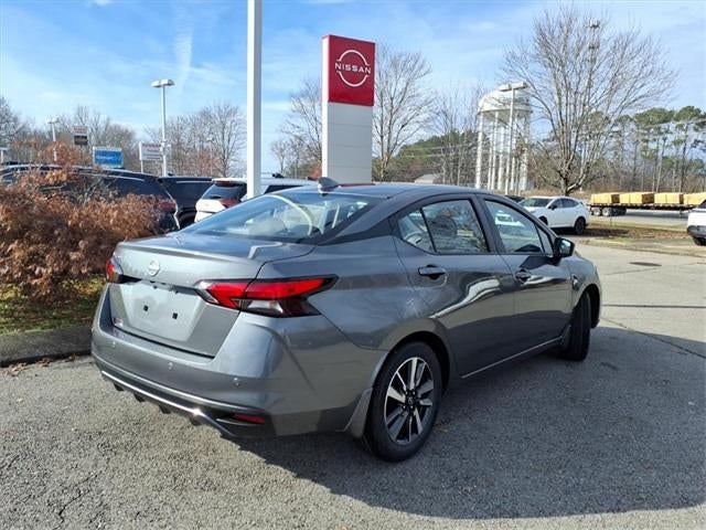 The 2025 Nissan Versa comes equipped with the following Trunk Package (Shopping Bag Hooks and Trunk Net), 16" Aluminum Alloy Wheels, 4 Speakers, ABS brakes, Air Conditioning, Alloy wheels, Apple CarPlay/Android Auto, Auto High-beam Headlights, Blind Spot Warning, Brake assist, Bumpers: body-color, Carpeted Floor Mats & Trunk Mat (5-Piece Set), Delay-off headlights, Driver door bin, Driver vanity mirror, Dual front impact airbags, Dual front side impact airbags, Electronic Stability Control, Front anti-roll bar, Front Bucket Seats, Front Center Armrest, Front reading lights, Front wheel independent suspension, Fully automatic headlights, Heated door mirrors, Illuminated entry, Knee airbag, Low tire pressure warning, Occupant sensing airbag, Outside temperature display, Overhead airbag, Panic alarm, Passenger door bin, Passenger vanity mirror, Power door mirrors, Power steering, Power windows, Radio data system, Radio: AM/FM Audio System, Rear Parking Sensors, Rear side impact airbag, Rear window defroster, Remote keyless entry, Speed control, Splash Guards, Split folding rear seat, Steering wheel mounted audio controls, Tachometer, Telescoping steering wheel, Tilt steering wheel, Traction control, Trip computer, Upgraded Cloth Seat Trim, and Variably intermittent wipers. Gun Metallic 2025 Nissan Versa 1.6 SV FWD CVT 1.6L I4 DOHC 16V