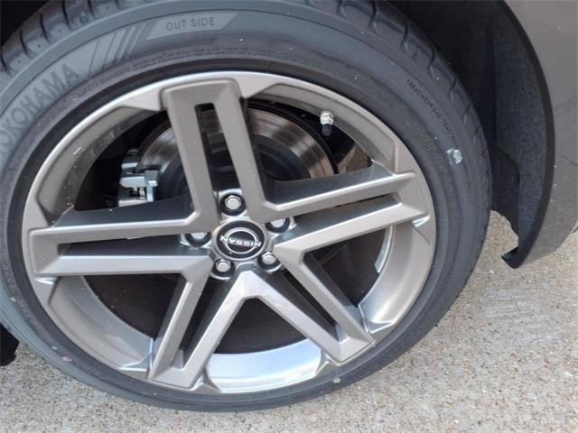 The 2025 Nissan Z comes equipped with the following Floor Mat Package (First Aid Kit), 18" x 9" Styled Alloy Wheels, 4-Wheel Disc Brakes, 6 Speakers, ABS brakes, Air Conditioning, Alloy wheels, AM/FM radio: SiriusXM, Anti-whiplash front head restraints, Apple CarPlay/Android Auto, Auto High-beam Headlights, Auto-dimming Rear-View mirror, Automatic temperature control, Blind Spot Warning, Brake assist, Bumpers: body-color, Delay-off headlights, Driver door bin, Driver vanity mirror, Dual front impact airbags, Dual front side impact airbags, Electronic Stability Control, Four wheel independent suspension, Front anti-roll bar, Front Bucket Seats, Front Center Armrest, Front reading lights, Fully automatic headlights, Leather Shift Knob, Leather steering wheel, Low tire pressure warning, Nissan Audio System with 6 Speakers, Occupant sensing airbag, Outside temperature display, Overhead airbag, Panic alarm, Passenger door bin, Passenger vanity mirror, Power door mirrors, Power steering, Power windows, Radio data system, Rear anti-roll bar, Rear window defroster, Remote keyless entry, Security system, Speed control, Speed-sensing steering, Steering wheel mounted audio controls, Tachometer, Telescoping steering wheel, Tilt steering wheel, Traction control, Trip computer, Turn signal indicator mirrors, Variably intermittent wipers, Voltmeter, and Woven Cloth Seat Trim. Gun Metallic 2025 Nissan Z Sport RWD 6-Speed Manual 3.0L V6
