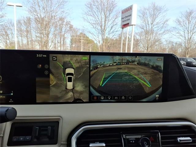 The 2026 Nissan Armada comes equipped with the following 4WD, 12 Speakers, 3rd row seats: split-bench, 4-Wheel Disc Brakes, ABS brakes, Adaptive suspension, Air Conditioning, Alloy wheels, AM/FM radio: SiriusXM w/360L, Anti-whiplash front head restraints, Apple CarPlay/Android Auto, Auto High-beam Headlights, Auto tilt-away steering wheel, Auto-dimming door mirrors, Auto-dimming Rear-View mirror, Auto-leveling suspension, Automatic temperature control, Brake assist, Bumpers: body-color, Climate Controlled Heated and Ventilated Front Seats, Compass, Delay-off headlights, Driver door bin, Driver vanity mirror, Dual front impact airbags, Dual front side impact airbags, Electronic Stability Control, Emergency communication system: NissanConnect Services, Four wheel independent suspension, Front anti-roll bar, Front Bucket Seats, Front Center Armrest, Front dual zone A/C, Front fog lights, Front reading lights, Fully automatic headlights, Garage door transmitter: HomeLink, Genuine wood dashboard insert, Heads-Up Display, Heated door mirrors, Heated front seats, Heated rear seats, Heated steering wheel, HVAC memory, Illuminated entry, Knee airbag, Leather steering wheel, Low tire pressure warning, Memory seat, Navigation system: Google Maps, Occupant sensing airbag, Outside temperature display, Overhead airbag, Overhead console, Panic alarm, Passenger door bin, Passenger vanity mirror, Power door mirrors, Power driver seat, Power Liftgate, Power moonroof, Power passenger seat, Power steering, Power windows, Quilted Leather Seat Trim, Radio: NissanConnect with SiriusXM 360L, Rain sensing wipers, Rear air conditioning, Rear anti-roll bar, Rear reading lights, Rear window defroster, Rear window wiper, Reclining 3rd row seat, Remote keyless entry, Security system, Speed control, Speed-sensing steering, Speed-Sensitive Wipers, Split folding rear seat, Spoiler, Steering wheel memory, Steering wheel mounted audio controls, Tachometer, Telescoping steering wheel, Tilt steering wheel, Traction control, Trip computer, Turn signal indicator mirrors, Variably intermittent wipers, Ventilated front seats, Voltmeter, and Wheels: 22" x 8.5J Machined & Painted Alloy. Super Black 2026 Nissan Armada Platinum Reserve 4WD 9-Speed Automatic 3.5L DOHC 4WD.