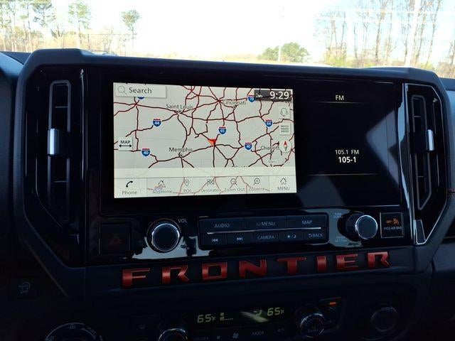 The 2026 Nissan Frontier comes equipped with the following 4WD, 17" Painted Alloy Wheels, 3.692 Axle Ratio, 4-Wheel Disc Brakes, 6 Speakers, ABS brakes, Air Conditioning, Alloy wheels, AM/FM radio: SiriusXM, Anti-whiplash front head restraints, Auto High-beam Headlights, Automatic temperature control, Blind Spot Warning, Brake assist, Bumpers: body-color, Delay-off headlights, Driver door bin, Driver vanity mirror, Dual front impact airbags, Dual front side impact airbags, Electronic Stability Control, Emergency communication system, Front anti-roll bar, Front Bucket Seats, Front Center Armrest, Front dual zone A/C, Front fog lights, Front reading lights, Front wheel independent suspension, Fully automatic headlights, Heated Front Bucket Seats, Heated front seats, Heated steering wheel, Illuminated entry, Knee airbag, Leather steering wheel, Low tire pressure warning, Occupant sensing airbag, Overhead airbag, Overhead console, Panic alarm, Passenger door bin, Passenger vanity mirror, Power door mirrors, Power driver seat, Power passenger seat, Power steering, Power windows, PRO Embroidered Premium Cloth Seat Trim, Radio data system, Radio: SiriusXM/AM/FM/Auxiliary/USB Audio System, Rear anti-roll bar, Rear seat center armrest, Rear side impact airbag, Rear step bumper, Remote keyless entry, Security system, Speed control, Speed-sensing steering, Split folding rear seat, Steering wheel mounted audio controls, Tachometer, Telescoping steering wheel, Tilt steering wheel, Traction control, Trip computer, Variably intermittent wipers, Voltmeter, and Wireless Apple CarPlay/Wireless Android Auto. Blstn Prl 2026 Nissan Frontier PRO-4X 4WD 9-Speed Automatic with Overdrive V6 4WD.