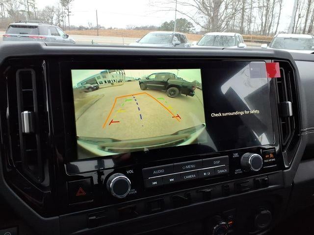 The 2026 Nissan Frontier comes equipped with the following 17" Alloy Wheels, 3.692 Axle Ratio, 4-Wheel Disc Brakes, 6 Speakers, ABS brakes, Air Conditioning, Alloy wheels, AM/FM radio, Anti-whiplash front head restraints, Auto High-beam Headlights, Blind Spot Warning, Brake assist, Bumpers: body-color, Delay-off headlights, Driver door bin, Driver vanity mirror, Dual front impact airbags, Dual front side impact airbags, Electronic Stability Control, Emergency communication system, Front anti-roll bar, Front Bucket Seats, Front Center Armrest, Front reading lights, Front wheel independent suspension, Fully automatic headlights, Illuminated entry, Knee airbag, Low tire pressure warning, Occupant sensing airbag, Overhead airbag, Overhead console, Panic alarm, Passenger door bin, Passenger vanity mirror, Power door mirrors, Power driver seat, Power steering, Power windows, Premium Cloth Seat Trim, Radio data system, Radio: SiriusXM/AM/FM/Auxiliary/USB Audio System, Rear anti-roll bar, Rear seat center armrest, Rear side impact airbag, Rear step bumper, Remote keyless entry, Security system, Speed control, Speed-sensing steering, Split folding rear seat, Steering wheel mounted audio controls, Tachometer, Telescoping steering wheel, Tilt steering wheel, Traction control, Trip computer, Variably intermittent wipers, Voltmeter, and Wireless Apple CarPlay/Wireless Android Auto. White 2026 Nissan Frontier SV RWD 9-Speed Automatic with Overdrive 3.8L DI DOHC 24V V6
