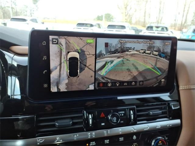 The 2026 Nissan Pathfinder comes equipped with the following 4WD, 13 Speakers, 3rd row seats: bench, 4-Wheel Disc Brakes, ABS brakes, Air Conditioning, Alloy wheels, AM/FM radio: SiriusXM w/360L, Auto High-beam Headlights, Auto tilt-away steering wheel, Auto-dimming Rear-View mirror, Automatic temperature control, Bodyside moldings, Bose Premium Audio System, Brake assist, Bumpers: body-color, Climate Controlled Front Bucket Seats, Delay-off headlights, Driver door bin, Driver vanity mirror, Dual front impact airbags, Dual front side impact airbags, Electronic Stability Control, Emergency communication system: NissanConnect Services, Four wheel independent suspension, Front anti-roll bar, Front Bucket Seats, Front Center Armrest, Front dual zone A/C, Front reading lights, Fully automatic headlights, Garage door transmitter: HomeLink, Heads-Up Display, Heated door mirrors, Heated front seats, Heated rear seats, Heated steering wheel, Illuminated entry, Knee airbag, Low tire pressure warning, Memory seat, Navigation system: NissanConnect with Navigation and Services, NissanConnect featuring Apple CarPlay and Android Auto, Occupant sensing airbag, Outside temperature display, Overhead airbag, Overhead console, Panic alarm, Passenger door bin, Passenger vanity mirror, Power door mirrors, Power driver seat, Power Liftgate, Power moonroof, Power passenger seat, Power steering, Power windows, Premium Paint and 2-Tone Roof, Radio data system, Radio: AM/FM Audio System with NissanConnect, Rain sensing wipers, Rear air conditioning, Rear anti-roll bar, Rear reading lights, Rear seat center armrest, Rear side impact airbag, Rear window defroster, Rear window wiper, Reclining 3rd row seat, Remote keyless entry, Security system, Semi-Aniline Leather-Appointed Seating Surfaces, Speed control, Speed-sensing steering, Speed-Sensitive Wipers, Split folding rear seat, Spoiler, Steering wheel memory, Steering wheel mounted audio controls, Tachometer, Telescoping steering wheel, Tilt steering wheel, Traction control, Trip computer, Turn signal indicator mirrors, Variably intermittent wipers, Ventilated front seats, and Wheels: 20" Machined Alloy. Gray 2026 Nissan Pathfinder Platinum 4WD 9-Speed Automatic 3.5L V6 DOHC 4WD.