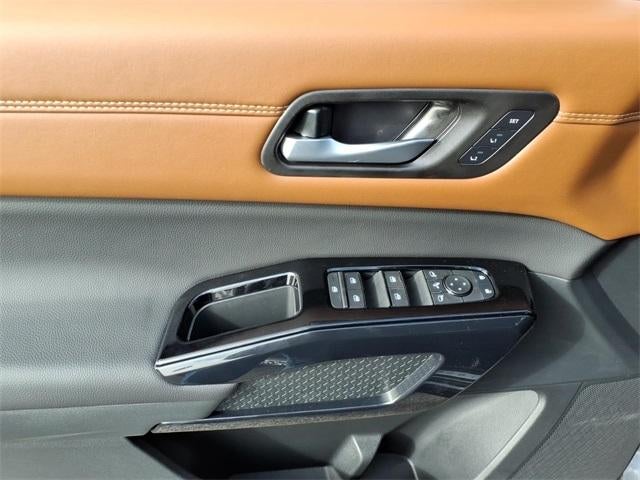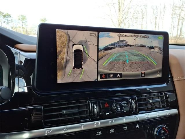 The 2026 Nissan Pathfinder comes equipped with the following 4WD, 13 Speakers, 3rd row seats: bench, 4-Wheel Disc Brakes, ABS brakes, Air Conditioning, Alloy wheels, AM/FM radio: SiriusXM w/360L, Auto High-beam Headlights, Auto tilt-away steering wheel, Auto-dimming Rear-View mirror, Automatic temperature control, Bodyside moldings, Bose Premium Audio System, Brake assist, Bumpers: body-color, Climate Controlled Front Bucket Seats, Delay-off headlights, Driver door bin, Driver vanity mirror, Dual front impact airbags, Dual front side impact airbags, Electronic Stability Control, Emergency communication system: NissanConnect Services, Four wheel independent suspension, Front anti-roll bar, Front Bucket Seats, Front Center Armrest, Front dual zone A/C, Front reading lights, Fully automatic headlights, Garage door transmitter: HomeLink, Heads-Up Display, Heated door mirrors, Heated front seats, Heated rear seats, Heated steering wheel, Illuminated entry, Knee airbag, Low tire pressure warning, Memory seat, Navigation system: NissanConnect with Navigation and Services, NissanConnect featuring Apple CarPlay and Android Auto, Occupant sensing airbag, Outside temperature display, Overhead airbag, Overhead console, Panic alarm, Passenger door bin, Passenger vanity mirror, Power door mirrors, Power driver seat, Power Liftgate, Power moonroof, Power passenger seat, Power steering, Power windows, Radio data system, Radio: AM/FM Audio System with NissanConnect, Rain sensing wipers, Rear air conditioning, Rear anti-roll bar, Rear reading lights, Rear seat center armrest, Rear side impact airbag, Rear window defroster, Rear window wiper, Reclining 3rd row seat, Remote keyless entry, Security system, Semi-Aniline Leather-Appointed Seating Surfaces, Speed control, Speed-sensing steering, Speed-Sensitive Wipers, Split folding rear seat, Spoiler, Steering wheel memory, Steering wheel mounted audio controls, Tachometer, Telescoping steering wheel, Tilt steering wheel, Traction control, Trip computer, Turn signal indicator mirrors, Variably intermittent wipers, Ventilated front seats, and Wheels: 20" Machined Alloy. Gun Met 2026 Nissan Pathfinder Platinum 4WD 9-Speed Automatic 3.5L V6 DOHC 4WD.