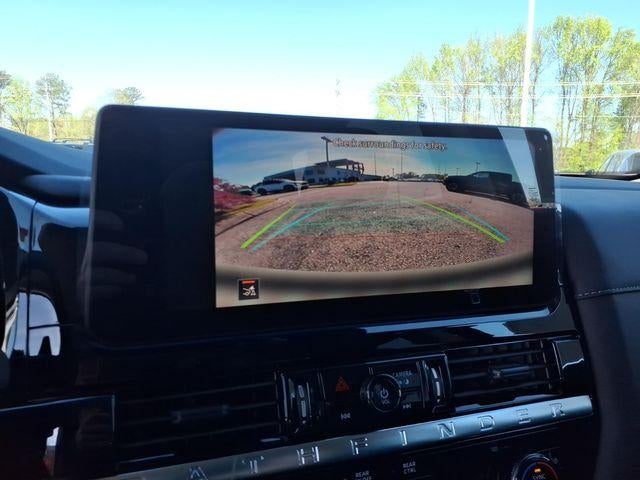 The 2026 Nissan Pathfinder comes equipped with the following 4WD, 18" Painted Alloy Wheels, 3rd row seats: bench, 4-Piece Black Splash Guards, 4-Wheel Disc Brakes, 6 Speakers, ABS brakes, Air Conditioning, Alloy wheels, AM/FM radio: SiriusXM w/360L, Auto High-beam Headlights, Automatic temperature control, Bench Seat Carpeted Floor Mats, Brake assist, Bumpers: body-color, Cloth Seating Surfaces, Cross Bars, Delay-off headlights, Driver door bin, Driver vanity mirror, Dual front impact airbags, Dual front side impact airbags, Electronic Stability Control, Emergency communication system: NissanConnect Services, Four wheel independent suspension, Front anti-roll bar, Front Bucket Seats, Front Center Armrest, Front dual zone A/C, Front reading lights, Fully automatic headlights, Garage door transmitter: myQ Connected Garage, Heated door mirrors, Heated Front Bucket Seats, Heated front seats, Illuminated entry, Knee airbag, Low tire pressure warning, NissanConnect featuring Apple CarPlay and Android Auto, Occupant sensing airbag, Outside temperature display, Overhead airbag, Overhead console, Panic alarm, Passenger door bin, Passenger vanity mirror, Power door mirrors, Power driver seat, Power Liftgate, Power steering, Power windows, Radio data system, Radio: AM/FM Audio System with NissanConnect, Rear air conditioning, Rear anti-roll bar, Rear reading lights, Rear seat center armrest, Rear side impact airbag, Rear window defroster, Rear window wiper, Reclining 3rd row seat, Remote keyless entry, Security system, Speed control, Speed-sensing steering, Split folding rear seat, Spoiler, Steering wheel mounted audio controls, Tachometer, Telescoping steering wheel, Tilt steering wheel, Traction control, Trip computer, and Variably intermittent wipers. White Pearl 2026 Nissan Pathfinder SV 4WD 9-Speed Automatic 3.5L V6 DOHC 4WD.