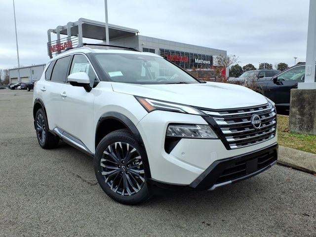 The 2026 Nissan Rogue comes equipped with the following AWD, 10 Speakers, 4-Wheel Disc Brakes, ABS brakes, Air Conditioning, Alloy wheels, AM/FM radio: SiriusXM w/360L, Auto High-beam Headlights, Auto-dimming Rear-View mirror, Automatic temperature control, Bose Premium Audio System, Brake assist, Bumpers: body-color, Delay-off headlights, Driver door bin, Driver vanity mirror, Dual front impact airbags, Dual front side impact airbags, Electronic Stability Control, Emergency communication system: NissanConnect Services, Four wheel independent suspension, Front anti-roll bar, Front Bucket Seats, Front Center Armrest, Front dual zone A/C, Front reading lights, Fully automatic headlights, Garage door transmitter: myQ Connected Garage, Heads-Up Display, Heated door mirrors, Heated Front Bucket Seats, Heated front seats, Heated steering wheel, Illuminated entry, Knee airbag, Low tire pressure warning, Memory seat, Navigation system: Google Maps, Occupant sensing airbag, Outside temperature display, Overhead airbag, Overhead console, Panic alarm, Passenger door bin, Passenger vanity mirror, Power door mirrors, Power driver seat, Power Liftgate, Power moonroof, Power passenger seat, Power steering, Power windows, Quilted Semi-Aniline Leather-Appointed Seat Trim, Radio data system, Radio: AM/FM NissanConnect with Navigation, Rear anti-roll bar, Rear reading lights, Rear seat center armrest, Rear side impact airbag, Rear window defroster, Rear window wiper, Remote keyless entry, Security system, Speed control, Speed-sensing steering, Speed-Sensitive Wipers, Split folding rear seat, Spoiler, Steering wheel mounted audio controls, Tachometer, Telescoping steering wheel, Tilt steering wheel, Traction control, Trip computer, Turn signal indicator mirrors, Variably intermittent wipers, Wheels: 19" Unique Dark Painted Aluminum Alloy, and Wireless Apple CarPlay/Wireless Android Auto. White Pearl 2026 Nissan Rogue Platinum AWD CVT with Xtronic 1.5L DOHC AWD.