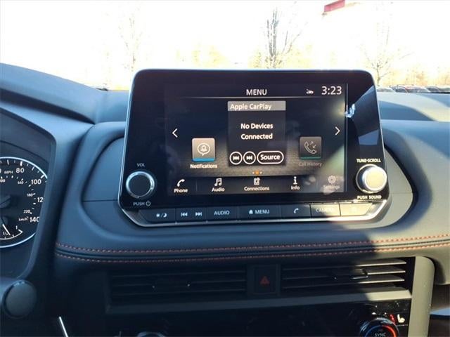- Radio: AM/FM NissanConnect -inc: 6 speakers plus 2 tweeters, Apple CarPlay, Android Auto, 8" color touch screen display, Bluetooth®, 2 front USB type-C, Wi-Fi hotspot and NissanConnect Services powered by SiriusXM
