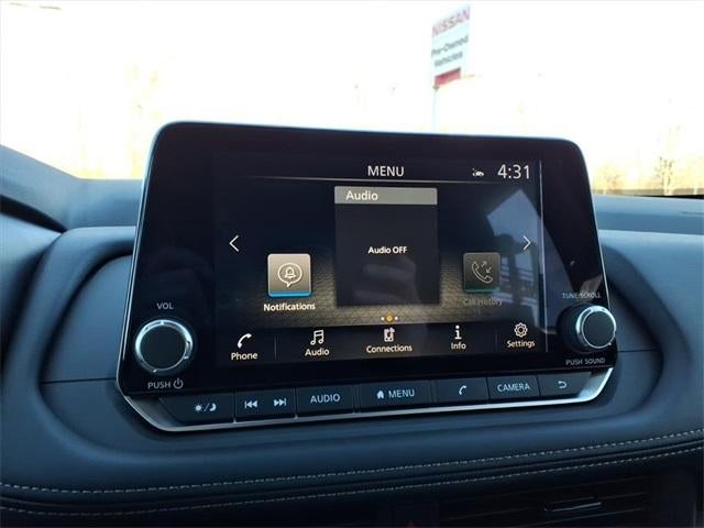 - Radio: AM/FM NissanConnect -inc: 6 speakers plus 2 tweeters, Apple CarPlay, Android Auto, 8" color touch screen display, Bluetooth®, 2 front USB type-C, Wi-Fi hotspot and NissanConnect Services powered by SiriusXM