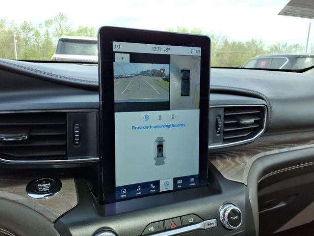 The 2020 Ford Explorer comes equipped with the following Equipment Group 600A, Premium Technology Package (10.1" LCD Capacitive Portrait Touchscreen, 2 Additional Speakers, and Leather Htd/Ventilated Sport Captain's Chairs), 4WD, 12 Speakers, 3.31 Non-Limited-Slip Axle Ratio, 3rd row seats: bench, 4-Wheel Disc Brakes, ABS brakes, Air Conditioning, Alloy wheels, AM/FM radio: SiriusXM, Auto High-beam Headlights, Auto-dimming door mirrors, Auto-dimming Rear-View mirror, Automatic temperature control, Brake assist, Bumpers: body-color, Compass, Delay-off headlights, Driver door bin, Driver vanity mirror, Dual front impact airbags, Dual front side impact airbags, Electronic Stability Control, Emergency communication system: SYNC 3 911 Assist, Engine Block Heater, Exterior Parking Camera Rear, FordPass Connect, Four wheel independent suspension, Front anti-roll bar, Front Bucket Seats, Front Center Armrest, Front dual zone A/C, Front fog lights, Front reading lights, Fully automatic headlights, Garage door transmitter: HomeLink, Genuine wood dashboard insert, Heated door mirrors, Heated front seats, Heated rear seats, Heated steering wheel, Illuminated entry, Knee airbag, Leather steering wheel, Low tire pressure warning, Memory seat, Navigation System, Occupant sensing airbag, Outside temperature display, Overhead airbag, Overhead console, Panic alarm, Passenger door bin, Passenger vanity mirror, Power door mirrors, Power driver seat, Power Liftgate, Power moonroof, Power passenger seat, Power steering, Power windows, Radio data system, Radio: B&O Sound System by Bang & Olufsen, Rain sensing wipers, Rear air conditioning, Rear anti-roll bar, Rear reading lights, Rear window defroster, Rear window wiper, Remote keyless entry, Roof rack: rails only, Security system, Speed control, Speed-sensing steering, Speed-Sensitive Wipers, Split folding rear seat, Spoiler, Steering wheel memory, Steering wheel mounted audio controls, SYNC 3 Communications & Entertainment System, SYNC 3/Apple CarPlay/Android Auto, Tachometer, Telescoping steering wheel, Tilt steering wheel, Traction control, Trip computer, Turn signal indicator mirrors, Variably intermittent wipers, Ventilated front seats, Voice-Activated Touchscreen Navigation System, Wheel Lock Kit (Dealer Installed), Wheels: 20" Bright Machined-Face Aluminum, and Wheels: 21" Premium Polished Aluminum. 2020 Ford Explorer