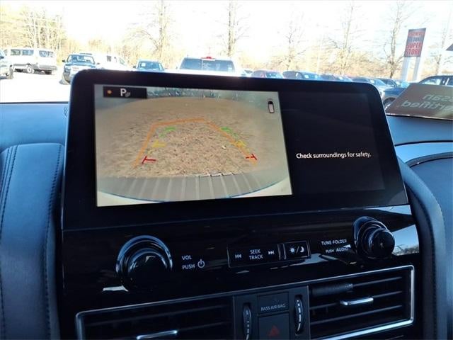 The 2021 Nissan Armada comes equipped with the following Cargo Package, SV Appearance Package (20" Aluminum Alloy Wheels, 20" Wheels, Auto-Dimming Interior Rear-View Mirror, Front Fog Lights, and Power Lift Gate), Nissan Certified Certified, 18" Alloy Wheels, 2.94 Axle Ratio, 3rd Row Carpeted Floor Mats - Bench Seat, 3rd row seats: split-bench, 4-Wheel Disc Brakes, 6 Speakers, ABS brakes, Air Conditioning, Alloy wheels, AM/FM radio: SiriusXM, Anti-whiplash front head restraints, Auto High-beam Headlights, Auto tilt-away steering wheel, Auto-leveling suspension, Automatic temperature control, Brake assist, Bumpers: body-color, Delay-off headlights, Driver door bin, Driver vanity mirror, Dual front impact airbags, Dual front side impact airbags, Electronic Stability Control, Emergency communication system: NissanConnect Services, Four wheel independent suspension, Front anti-roll bar, Front Bucket Seats, Front Center Armrest, Front dual zone A/C, Front reading lights, Fully automatic headlights, Heated door mirrors, Heated Front Bucket Seats, Heated front seats, Illuminated entry, Leather Shift Knob, Leatherette Seat Trim, Low tire pressure warning, Navigation System, NissanConnect featuring Apple CarPlay and Android Auto, Occupant sensing airbag, Outside temperature display, Overhead airbag, Overhead console, Panic alarm, Passenger door bin, Passenger vanity mirror, Power door mirrors, Power driver seat, Power passenger seat, Power steering, Power windows, Radio: NissanConnect w/SiriusXM, Rear air conditioning, Rear anti-roll bar, Rear reading lights, Rear seat center armrest, Rear window defroster, Rear window wiper, Reclining 3rd row seat, Remote keyless entry, Security system, Special Paint - Aspen White, Speed control, Speed-sensing steering, Speed-Sensitive Wipers, Split folding rear seat, Spoiler, Steering wheel mounted audio controls, Tachometer, Telescoping steering wheel, Tilt steering wheel, Traction control, Trip computer, Turn signal indicator mirrors, Variably intermittent wipers, and Voltmeter. 2021 Nissan Armada
