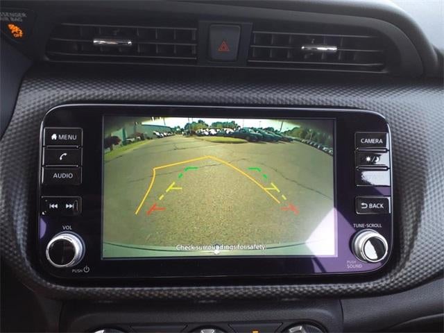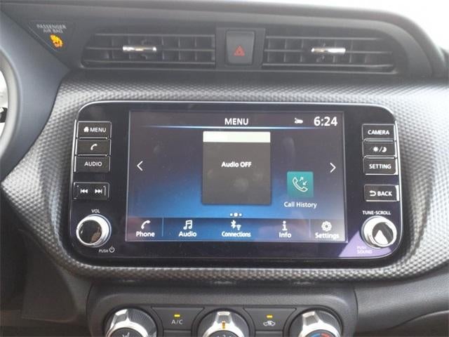 The 2024 Nissan Kicks comes equipped with the following Exterior Package (Crossbars and Exhaust Finisher), 3.93 Axle Ratio, 4-Wheel Disc Brakes, 6 Speakers, ABS brakes, Air Conditioning, Alloy wheels, AM/FM radio: SiriusXM, Apple CarPlay/Android Auto, Auto High-beam Headlights, Blind Spot Warning, Brake assist, Bumpers: body-color, Carpeted Floor Mats w/Cargo Mat, Cloth Seat Trim, Driver door bin, Driver vanity mirror, Dual front impact airbags, Dual front side impact airbags, Electronic Stability Control, External Ground Lighting w/Logo, Front anti-roll bar, Front Bucket Seats, Front Center Armrest, Front reading lights, Front wheel independent suspension, Fully automatic headlights, Heated door mirrors, Illuminated entry, Illuminated Kick Plates, Knee airbag, Low tire pressure warning, Occupant sensing airbag, Outside temperature display, Overhead airbag, Panic alarm, Passenger door bin, Passenger vanity mirror, Power door mirrors, Power steering, Power windows, Radio data system, Radio: AM/FM Audio System, Rear Parking Sensors, Rear reading lights, Rear side impact airbag, Rear window defroster, Rear window wiper, Remote keyless entry, Speed control, Splash Guards Grain (4 Piece), Split folding rear seat, Sport steering wheel, Steering wheel mounted audio controls, Tachometer, Telescoping steering wheel, Tilt steering wheel, Traction control, Trip computer, USB Charging Cable Set - Nissan, Variably intermittent wipers, Wheels: 17" Alloy (5-Hole), and Wheels: 17" Black Alloy. 2024 Nissan Kicks