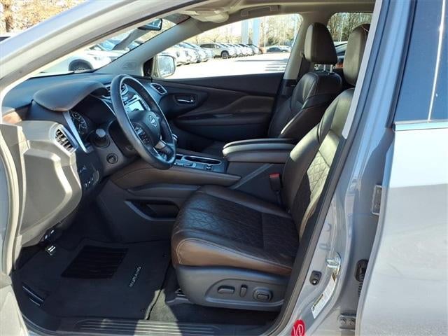 The 2024 Nissan Murano comes equipped with the following Nissan Certified Certified, CVT with Xtronic, Navigation system: NissanConnect with Navigation and Services, 11 Speakers, 4-Wheel Disc Brakes, 4.667 Axle Ratio, ABS brakes, Air Conditioning, Alloy wheels, AM/FM radio: SiriusXM, AM/FM/CD/MP3/WMA Audio System, Auto High-beam Headlights, Auto tilt-away steering wheel, Auto-dimming Rear-View mirror, Automatic temperature control, Blind Spot Warning, Brake assist, Bumpers: body-color, CD player, Child-Seat-Sensing Airbag, Compass, Delay-off headlights, Driver door bin, Driver vanity mirror, Dual front impact airbags, Dual front side impact airbags, Electronic Stability Control, Emergency communication system: NissanConnect Services (first 6 months included), Exterior Parking Camera Rear, Four wheel independent suspension, Front anti-roll bar, Front Bucket Seats, Front Center Armrest, Front dual zone A/C, Front fog lights, Front reading lights, Fully automatic headlights, Garage door transmitter: HomeLink, Heated & Ventilated Front Bucket Seats, Heated door mirrors, Heated front seats, Heated rear seats, Heated steering wheel, Illuminated entry, Knee airbag, Leather steering wheel, Low tire pressure warning, Memory seat, NissanConnect featuring Apple CarPlay and Android Auto, NissanConnect Services Powered By SiriusXM, Occupant sensing airbag, Outside temperature display, Overhead airbag, Overhead console, Panic alarm, Passenger door bin, Passenger vanity mirror, Power door mirrors, Power driver seat, Power Liftgate, Power moonroof, Power passenger seat, Power steering, Power windows, Radio data system, Rear anti-roll bar, Rear reading lights, Rear seat center armrest, Rear side impact airbag, Rear window defroster, Rear window wiper, Remote keyless entry, Security system, Semi-Aniline Leather-Appointed Seat Trim, Speed control, Speed-sensing steering, Speed-Sensitive Wipers, Split folding rear seat, Spoiler, Steering wheel memory, Steering wheel mounted audio controls, Tachometer, Telescoping steering wheel, Tilt steering wheel, Traction control, Trip computer, Turn signal indicator mirrors, Variably intermittent wipers, Ventilated front seats, and Wheels: 20" Unique Dark Hyper Silver. 2024 Nissan Murano