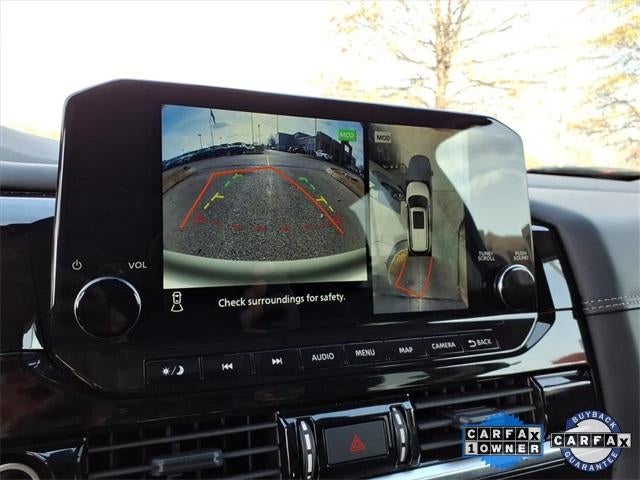 The 2024 Nissan Pathfinder comes equipped with the following Cargo Package (Cargo Area Protector, Cargo Net, and First Aid Kit), Nissan Certified Certified, 4WD, Navigation system: NissanConnect with Navigation and Services, 13 Speakers, 3rd row seats: bench, 4-Wheel Disc Brakes, ABS brakes, Air Conditioning, Alloy wheels, AM/FM radio: SiriusXM, Auto High-beam Headlights, Auto tilt-away steering wheel, Auto-dimming Rear-View mirror, Automatic temperature control, Axle Ratio: 4.334, Bench Seat Carpeted Floor Mats (Set of 4), Black Splash Guards (Set of 4), Bodyside moldings, Bose Premium Audio System, Brake assist, Bumpers: body-color, Cross Bars, Delay-off headlights, Driver door bin, Driver vanity mirror, Dual front impact airbags, Dual front side impact airbags, Electronic Stability Control, Emergency communication system, Exterior Parking Camera Rear, Four wheel independent suspension, Front anti-roll bar, Front Bucket Seats, Front Center Armrest, Front dual zone A/C, Front reading lights, Fully automatic headlights, Garage door transmitter: HomeLink, Heads-Up Display, Heated & Cooled Front Bucket Seats, Heated door mirrors, Heated front seats, Heated rear seats, Heated steering wheel, Illuminated entry, Knee airbag, Leather steering wheel, Low tire pressure warning, Memory seat, NissanConnect featuring Apple CarPlay and Android Auto, NissanConnect w/Navigation & Services, Occupant sensing airbag, Outside temperature display, Overhead airbag, Overhead console, Panic alarm, Passenger door bin, Passenger vanity mirror, Power door mirrors, Power driver seat, Power Liftgate, Power moonroof, Power passenger seat, Power steering, Power windows, Radio data system, Radio: AM/FM Audio System, Rain sensing wipers, Rear air conditioning, Rear anti-roll bar, Rear reading lights, Rear seat center armrest, Rear side impact airbag, Rear window defroster, Rear window wiper, Reclining 3rd row seat, Remote keyless entry, Security system, Semi-Aniline Leather-Appointed Seating Surfaces, Speed control, Speed-sensing steering, Speed-Sensitive Wipers, Split folding rear seat, Spoiler, Steering wheel memory, Steering wheel mounted audio controls, Tachometer, Telescoping steering wheel, Tilt steering wheel, Traction control, Trip computer, Turn signal indicator mirrors, Variably intermittent wipers, Ventilated front seats, and Wheels: 20" x 8J Machined Alloy. 2024 Nissan Pathfinder
