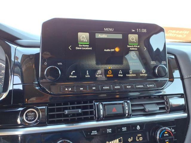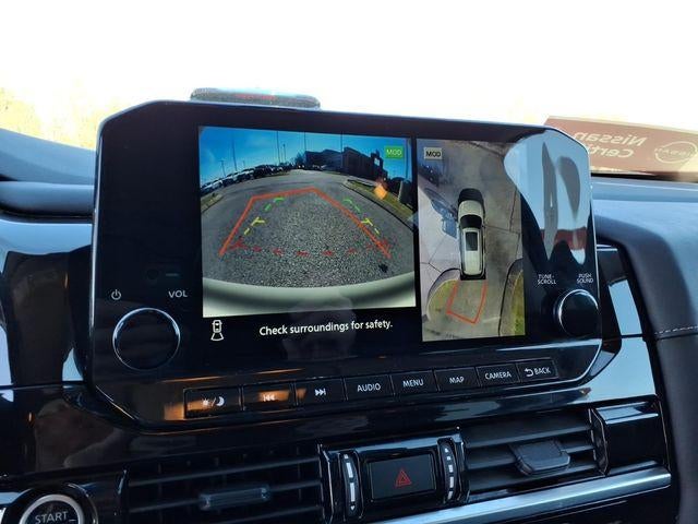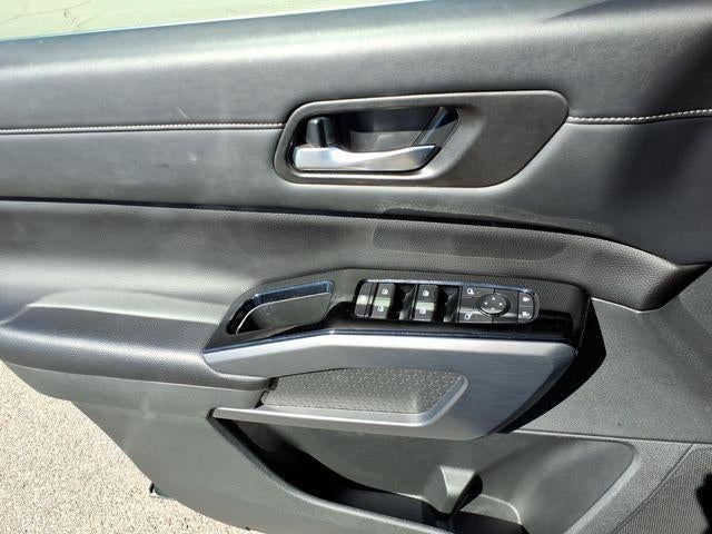 The 2024 Nissan Pathfinder comes equipped with the following Black Appearance Package (Black Grille (K10) and Black Liftgate Emblems), Nissan Certified Certified, Navigation system: NissanConnect with Navigation and Services, 3rd row seats: bench, 4-Wheel Disc Brakes, 6 Speakers, ABS brakes, Air Conditioning, Alloy wheels, AM/FM radio: SiriusXM, Auto High-beam Headlights, Auto-dimming Rear-View mirror, Automatic temperature control, Axle Ratio: 4.334, Bench Seat Carpeted Floor Mats (Set of 4), Black Splash Guards (Set of 4), Brake assist, Bumpers: body-color, Cross Bars, Delay-off headlights, Driver door bin, Driver vanity mirror, Dual front impact airbags, Dual front side impact airbags, Electronic Stability Control, Emergency communication system, Exterior Parking Camera Rear, Four wheel independent suspension, Front anti-roll bar, Front Bucket Seats, Front Center Armrest, Front dual zone A/C, Front reading lights, Fully automatic headlights, Garage door transmitter: HomeLink, Heated door mirrors, Heated Front Bucket Seats, Heated front seats, Heated steering wheel, Illuminated entry, Knee airbag, Leather steering wheel, Leather-Appointed Seating Surfaces, Low tire pressure warning, NissanConnect featuring Apple CarPlay and Android Auto, NissanConnect w/Navigation & Services, Occupant sensing airbag, Outside temperature display, Overhead airbag, Overhead console, Panic alarm, Passenger door bin, Passenger vanity mirror, Power door mirrors, Power driver seat, Power Liftgate, Power passenger seat, Power steering, Power windows, Radio data system, Radio: AM/FM Audio System, Rear air conditioning, Rear anti-roll bar, Rear reading lights, Rear seat center armrest, Rear side impact airbag, Rear window defroster, Rear window wiper, Reclining 3rd row seat, Remote keyless entry, Security system, Speed control, Speed-sensing steering, Split folding rear seat, Spoiler, Steering wheel mounted audio controls, Tachometer, Telescoping steering wheel, Tilt steering wheel, Traction control, Trip computer, Turn signal indicator mirrors, Variably intermittent wipers, and Wheels: 18" x 8J Machined Alloy. 2024 Nissan Pathfinder