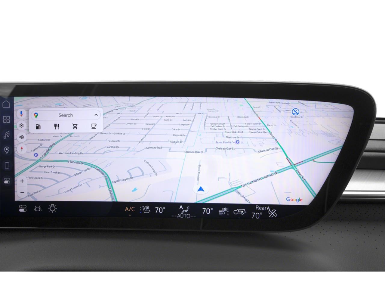 - Infotainment Center, customizable ultrawide 30" diagonal screen with Google built-in. Provides navigation capability, connected apps, personalized profiles for each driver's settings, Natural Voice Recognition and Phone Integration for Wireless Apple CarPlay/Wireless Android Auto for compatible phones
